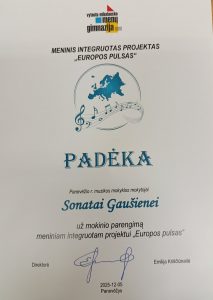 Gruodžio 5 d. Dembavos skyriaus mokytojos Sonatos Gaušienės mokinys Emilis Rusinas dalyvavo meniniame integruotame projekte „Europos pulsas“. Renginys vyko Panevėžio Vytauto Mikalausko menų gimnazijoje.