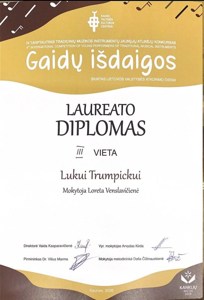Jaunieji atlikėjai, parengti mokytojo Kęstučio Plančiūno, konkurse pelnė II vietą ir laureatų diplomus. Tai – jų atkaklaus darbo, muzikinio augimo ir nuoširdaus atsidavimo menui įvertinimas. Didžiuojamės mokinių pasiekimais ir linkime jiems dar daugiau kūrybinės sėkmės bei įkvepiančių muzikinių patirčių!
